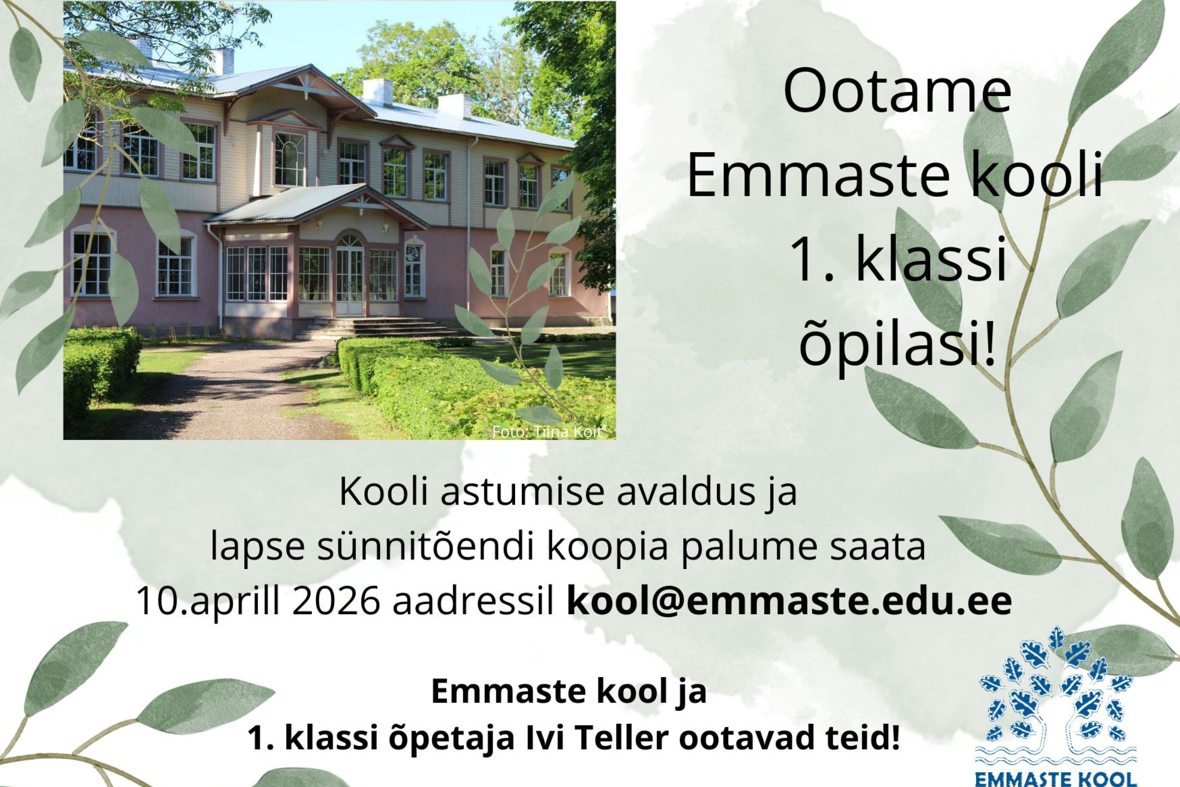 1. september Loomise kuupäev 19.08.2025 Autor Aet Sõmer Emmaste kool 105 Loomise kuupäev 10.07.2025 Autor Aet Sõmer Ootame Emmaste kooli 1. klassi õpilasi Loomise kuupäev 31.03.2025 Autor Aet Sõmer Naljapäeva kontsert 1. aprillil kell 17:30 Loomise kuupäev 31.03.2025 Autor Aet Sõmer Vaata rohkem